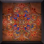 A radiant celebration of symmetry and light, Crimson Constellation transforms glass and mirror work into a celestial visual experience. Rich crimson tones burst outward in star-like formations, while reflective surfaces create depth, movement, and brilliance—turning the artwork into a glowing dialogue between fire, glass, and imagination.
